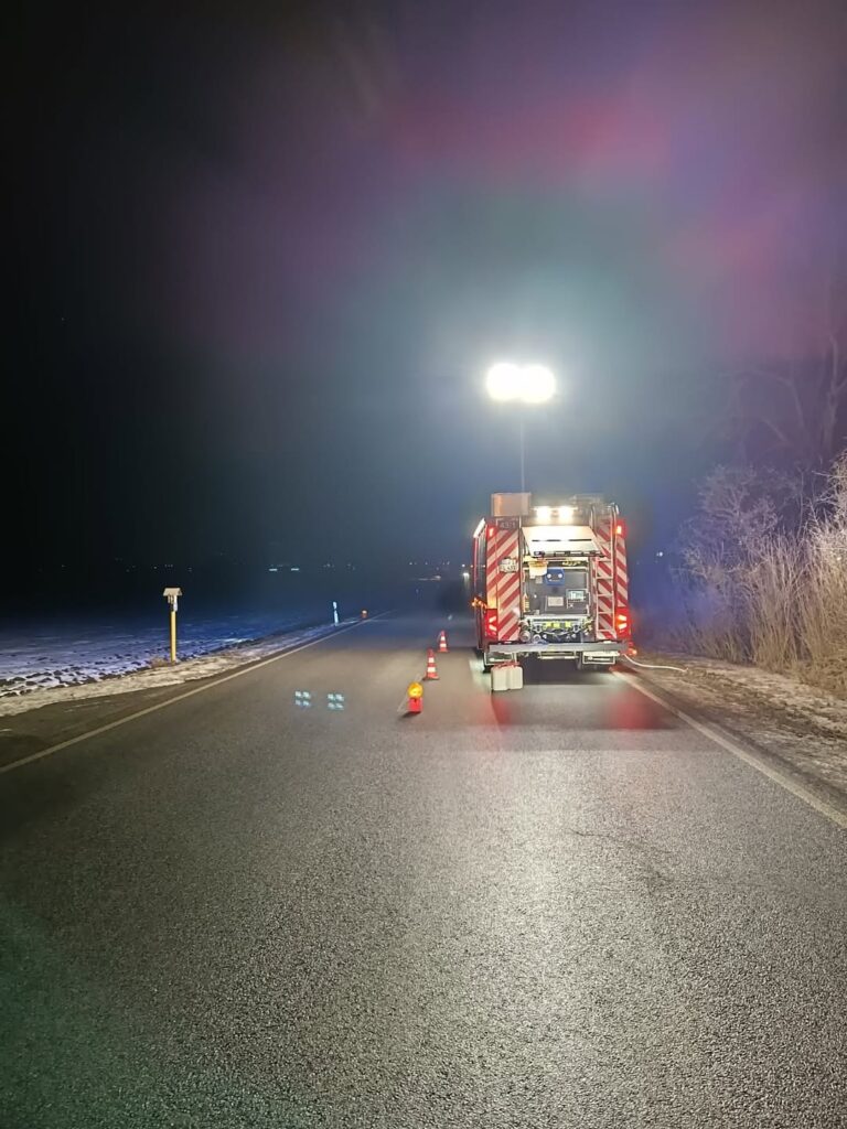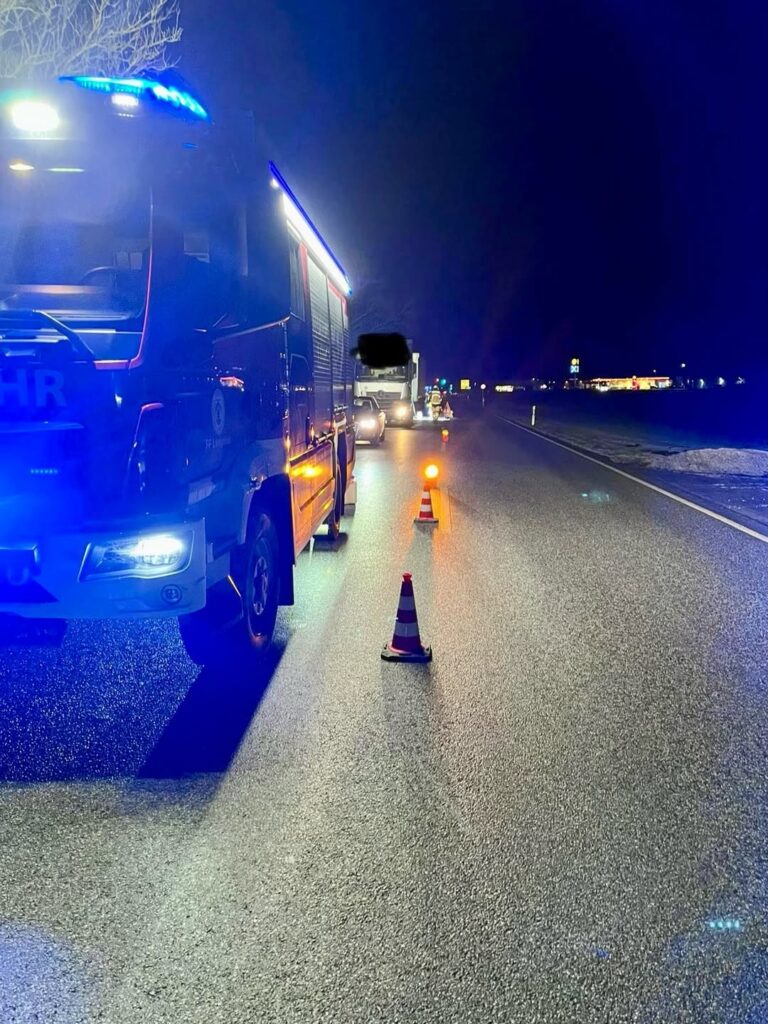 Am Abend des 15.01. wurden wir zu auslaufenden Betriebsstoffen aus einem LKW auf die Staatstraße 2111 Unterhollerau Richtung Dingolfing alarmiert.